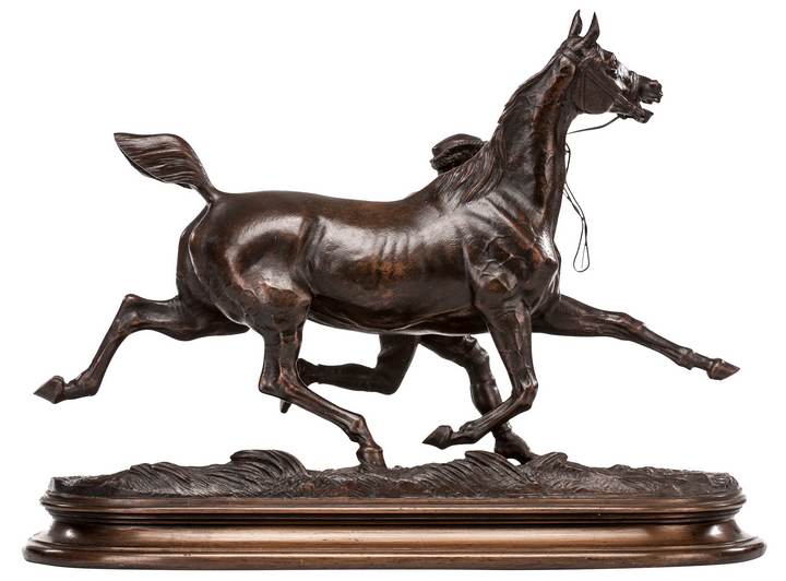 Athur-Marie-Gabriel, Comte du Passage developed a fascination for horses at an early age and went on to make them the central theme of his oeuvre. He initially pursued a military career in accordance with his family's wishes, but took time out of his duties to study sculpture with two of the foremost animalier sculptors of his day, Antoine-Louis Barye and Pierre-Jules Mêne. Modelled in 1873, Cheval à l'entraînement avec son lad became one of Du Passage’s most enduring works, reflecting both his mastery of sculpture and his thorough understanding of his subjects.