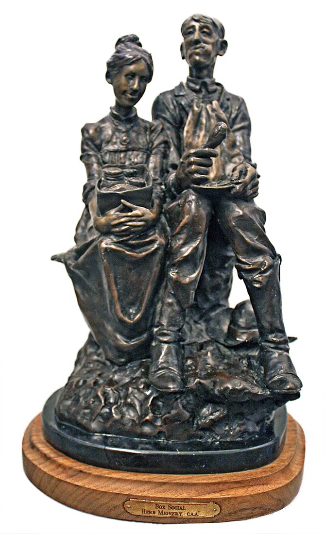 Herb Mignery was born on a ranch near Bartlett, Nebraska in 1931. He remembers never being able to tolerate a blank space on a piece of paper, and as a result, developed his artistic talent drawing cartoons for friends. Although he developed his skill to become an illustrator, it wasn't painting that would launch his career in the world of fine art. At the urging of one of his employers, he decided to sculpt his first bronze called Veteran.