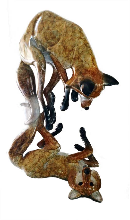 Jason is known around the globe for his stylized collection of wildlife sculptures. His smooth surfaces, graceful lines and carefully selected high polished areas accentuate motion and give life to some of nature’s most beloved subjects. Jason applies a patina finish to suit the unique character of each animal and devises them to act as detail. His trademark patina finishes have taken years of experimentation to develop and along with his distinct style have gained him notoriety in the art world.