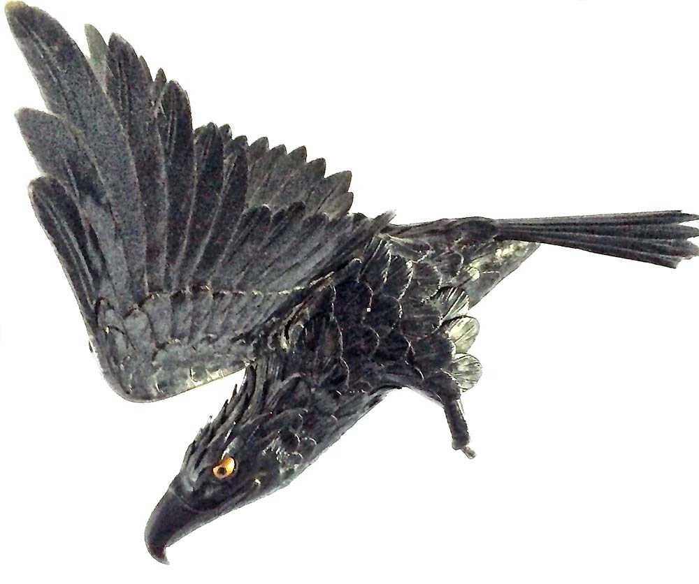 Massive Bronze Eagle with Extended Wings Perched on a Rock. Japanese Meiji, circa 1875